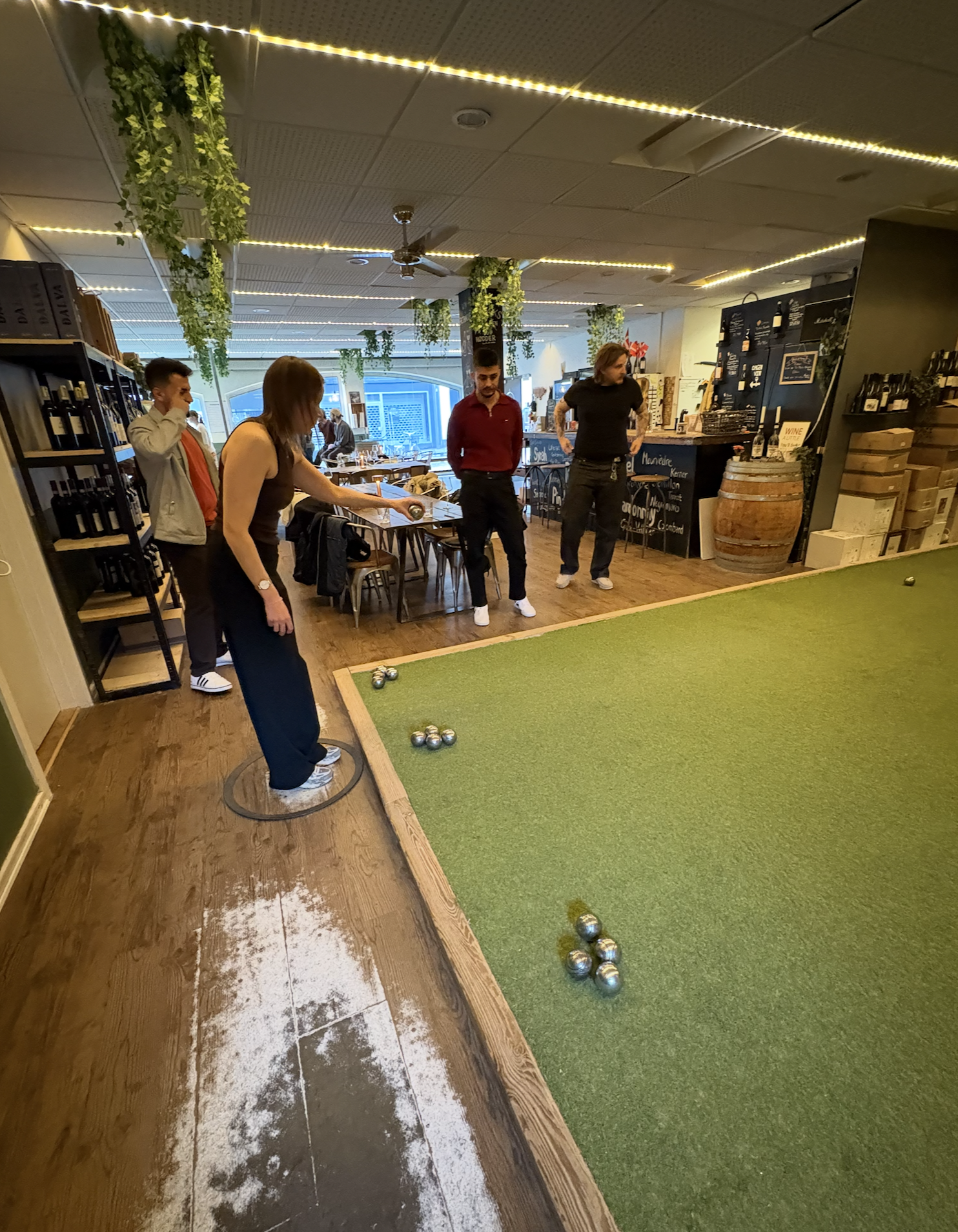 First, I had arranged a surprise for the team at a local place in Aarhus called "Vin and Petanque" (which translates directly to "Wine and Petanque"), which is exactly what it is.
