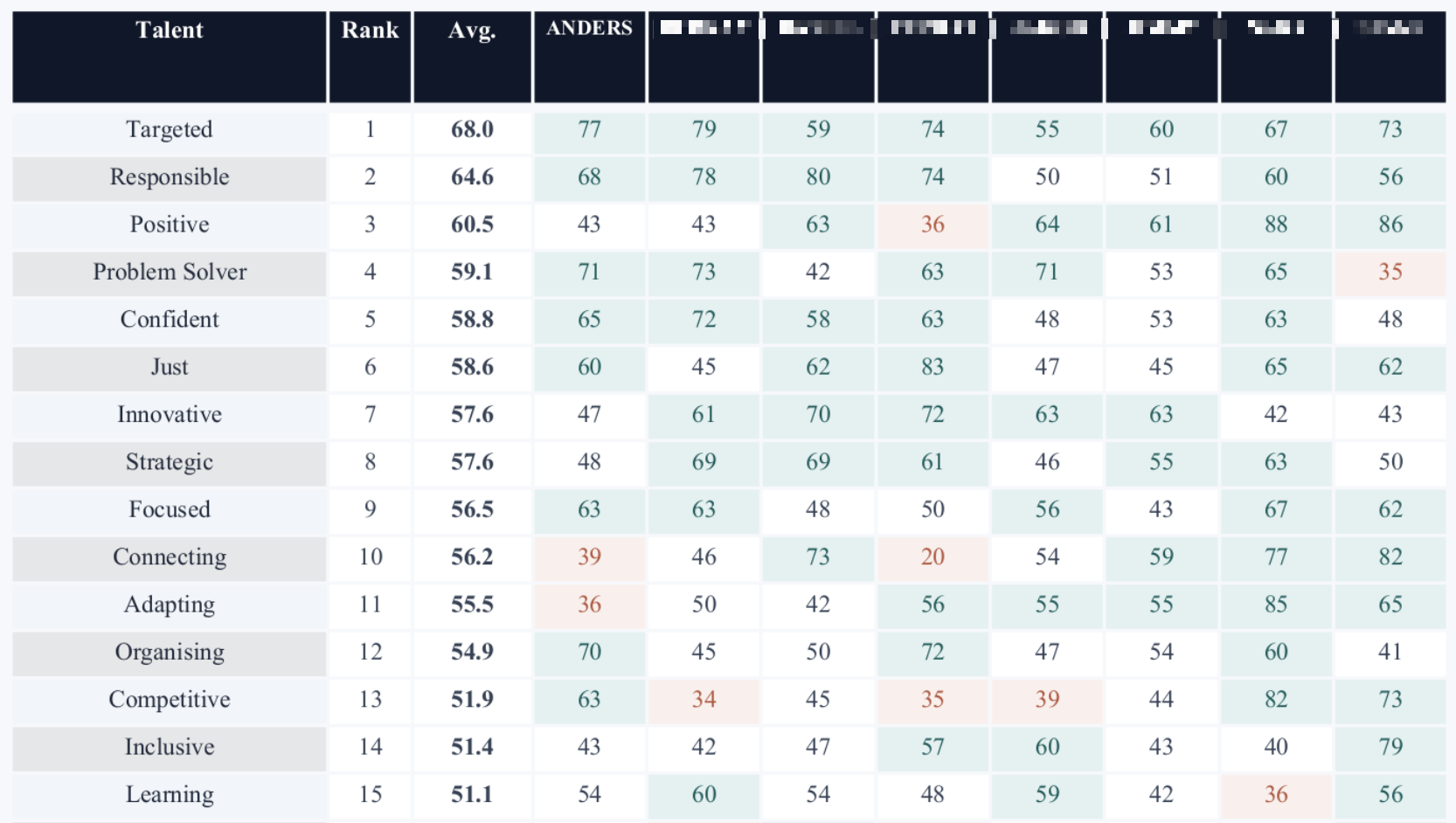 Targeted: We know where we're going, and we're driven to get there.Responsible: A promise is a promise.Positive: It'll all be fine!Problem solver: Jumping on problems and fixing them as quickly as possible.Confident: We got this!Just: We gotta treat everyone fair and play by the rules.Innovative: Thinking out of the box to create new ideas and alternative solutions.Strategic: Seeing multiple scenarios, anticipating obstacles, and finding the best path forward.Focused: Filtering out distractions to deep-dive into a task and get it done.