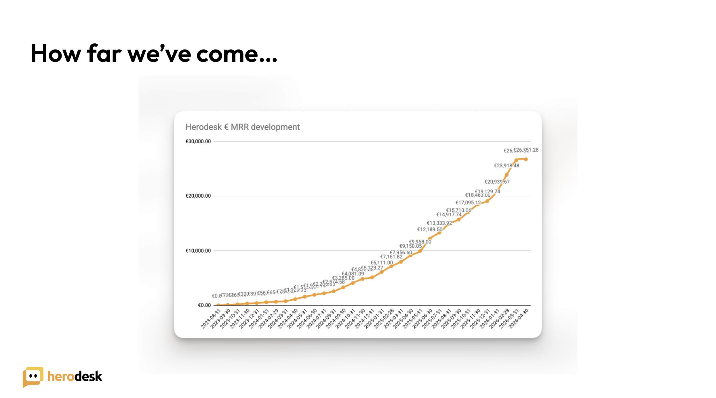 MRR growth since we started. Up and to the right 📈 We're currently adding about €3.000 new MRR every month, and by the time you read this, it'll be close to (if not passed) €28.000.