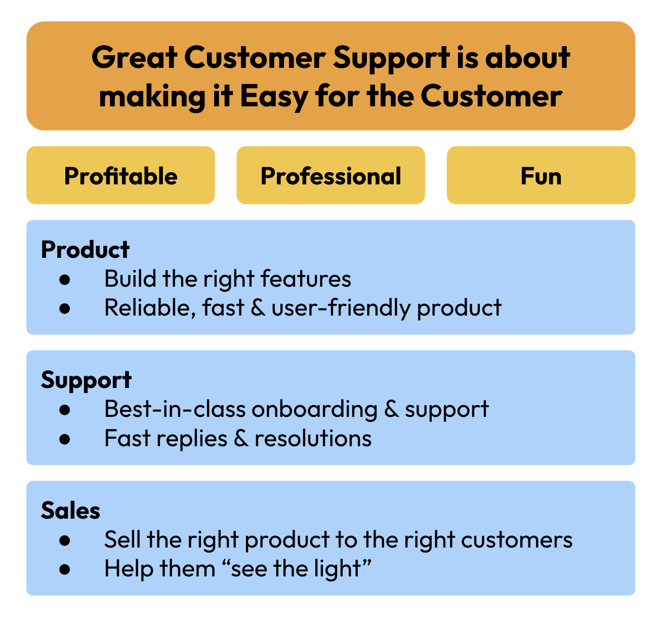 In support, it means we must have best-in-class customer onboarding and service. If we, as a customer support system, are not frontrunners and setting an example for how to deliver the best possible service, then who should be?