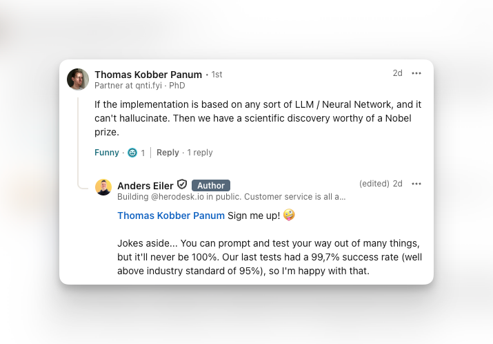 This matters a little when AI is answering questions about return policies. It matters enormously when it has access to customer data.We've been building AI agents into Herodesk for a while now. The pitch is genuinely compelling: instead of a webshop owner's support team manually answering "where is my order?" for the 40th time that week, the agent handles it. Instantly. Correctly. For around €0.30 per resolved conversation (our price, anyway). Good deal for everyone.